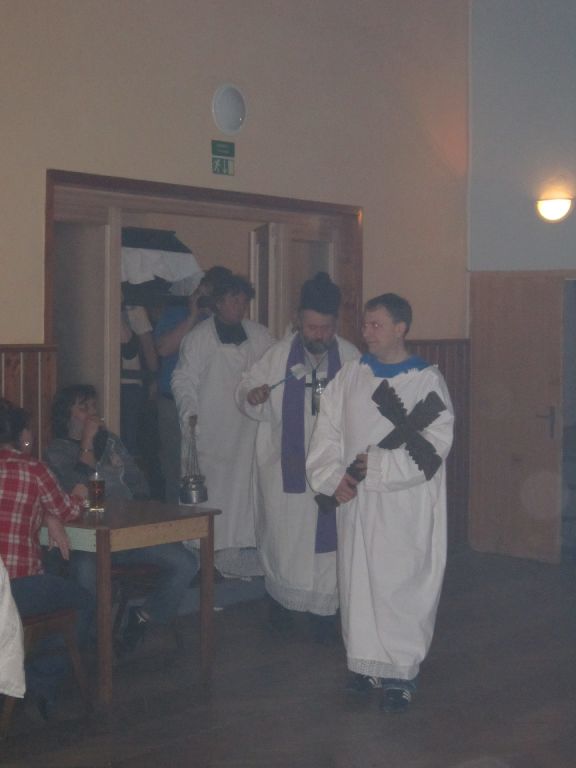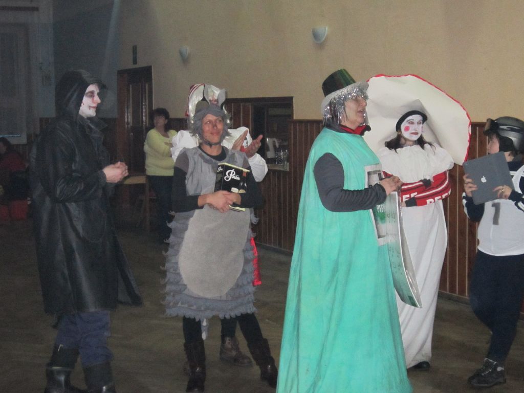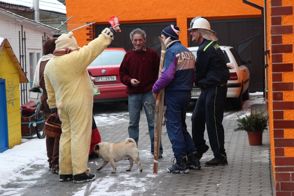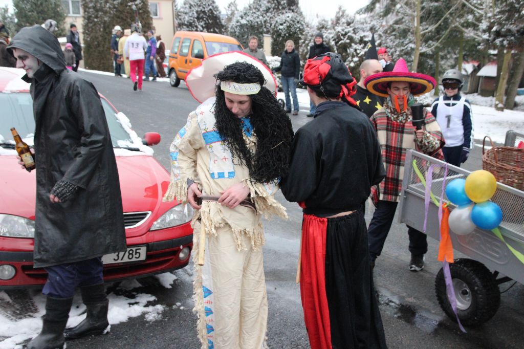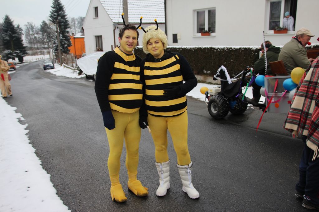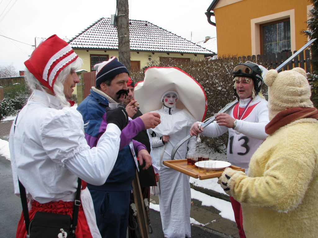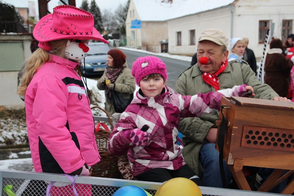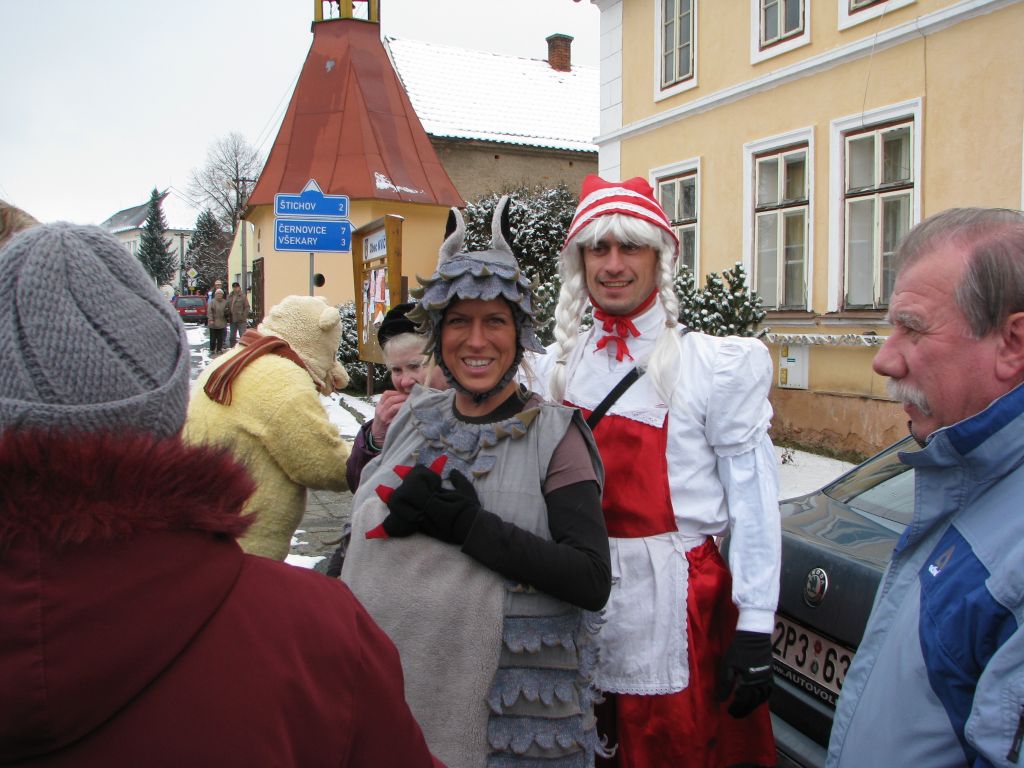 Občané ale i někteří chalupáři nás vítali u svých domů a připravili bohaté pohoštění. Po ukončení tradiční obchůzky se masky občerstvily dobrým guláškem. Místostarosta se svými pomocníky vyhodnotil nejlepší masky a poté následovala tradiční veselice, při níž si zařádili jak masky, tak ostaní. Krátce před půlnocí se všichni rozloučili s masopustem a tradiční smuteční řeč přečetl farář Láďa.